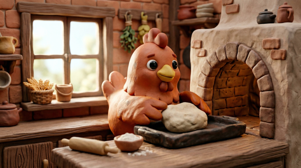 Português Um dia, a pequena galinha vermelha encontrou alguns grãos de trigo no chão. Seus olhos brilharam. — Se eu